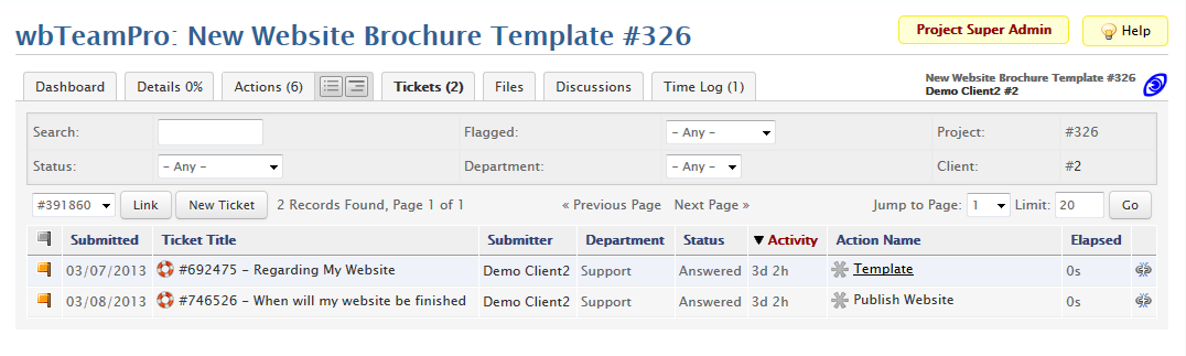 With wbTeamPro Project Management for WHMCS you will receive personal support and ongoing feature enhancements. wbTeamPro strives to provide an excellent balance of feature-rich functionality with a well organized and intuitive system for managing the breath of your project material.
