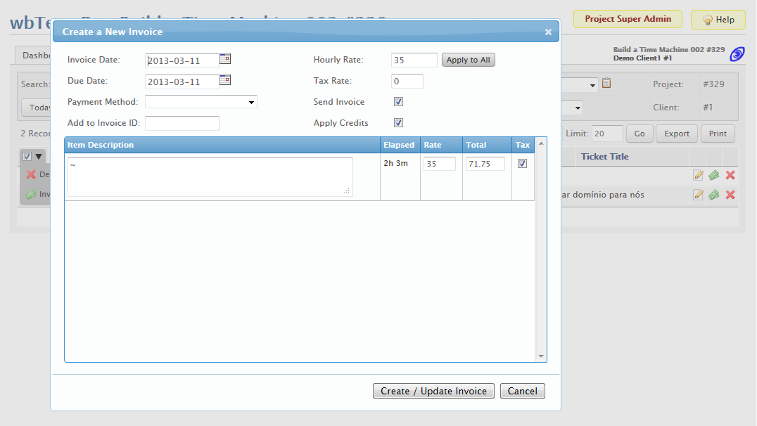 wbTeamPro offers both Manual and Automatic client invoice generation, allowing you to extend your activities into the automatic billing system of the WHMCS system. The invoicing automation options for each project can be customized, allowing you to bill some clients based on the completion of Project Milestones, while other clients are billing upon the completion of each Task.